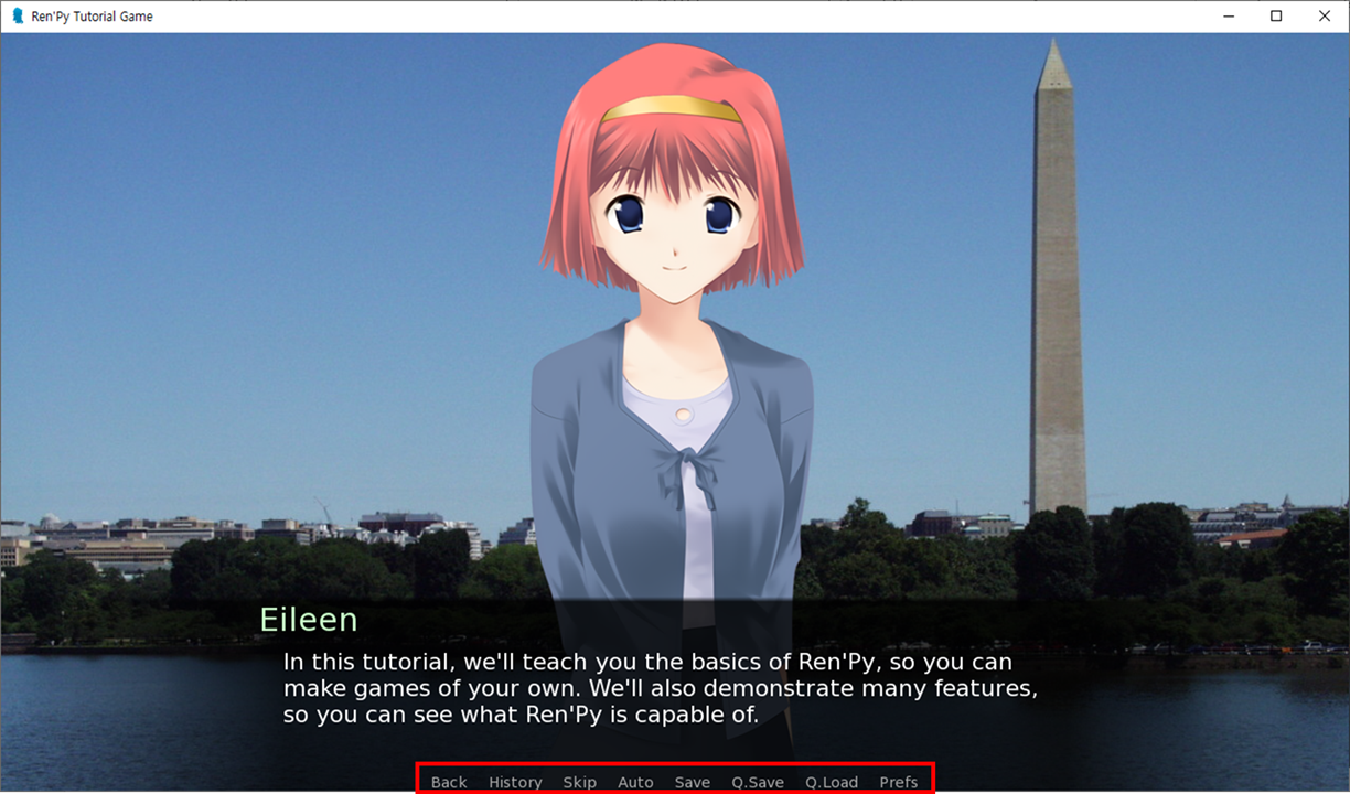 퀵메뉴의 소스는 screens.rpy 파일에 있다. quick_menu() 하위 코드를 변경하면 된다.